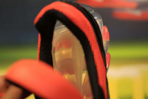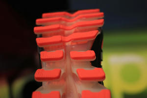 デザインは、ソールに反発力を高めるバネとなる板(ブレード)がつま先から後方に向かって8枚ほどついています。