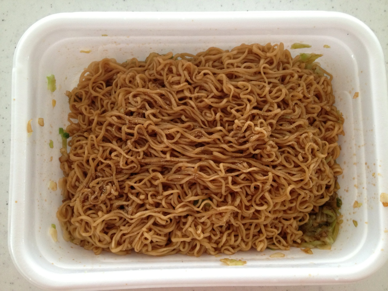 開けるとこんな感じ。普通サイズのぺヤングの麺が2つも入ってるんです!!2つも!