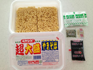 実際、この大きいソース1つと、通常サイズ2個が同じ量なのか、違うのか、その辺は分かりませんが、どうせ麺を2つ入れるなら他も2つずつ入れたほうが面白かった!!発売当時そう感じたのを思い出しました。