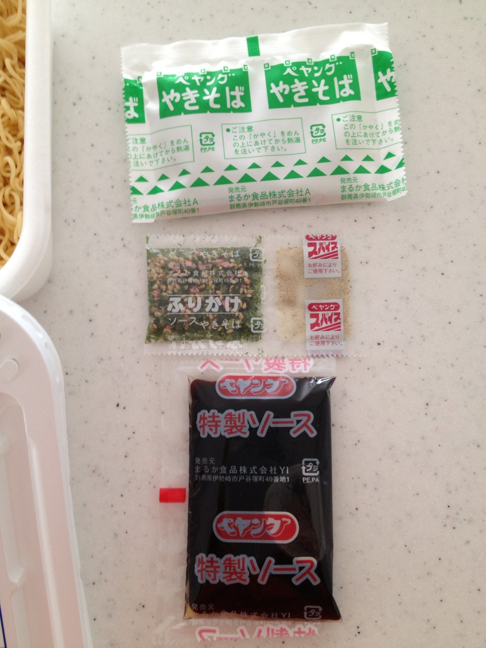 なのに、ソース、スパイス、かやく類は大きいものが1つ。